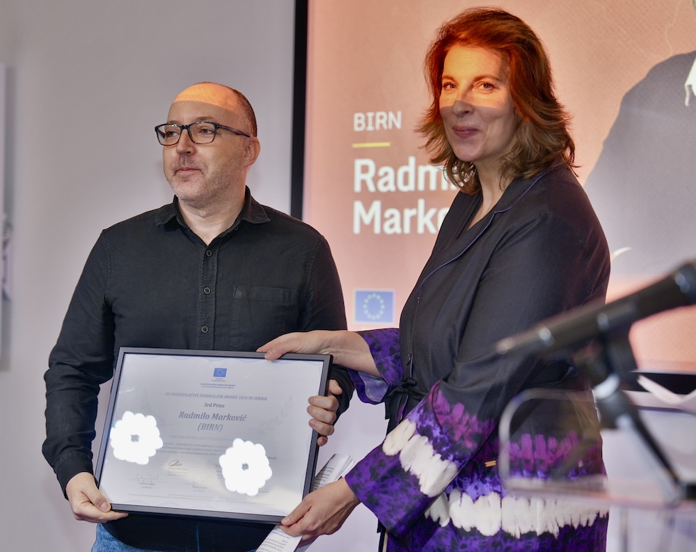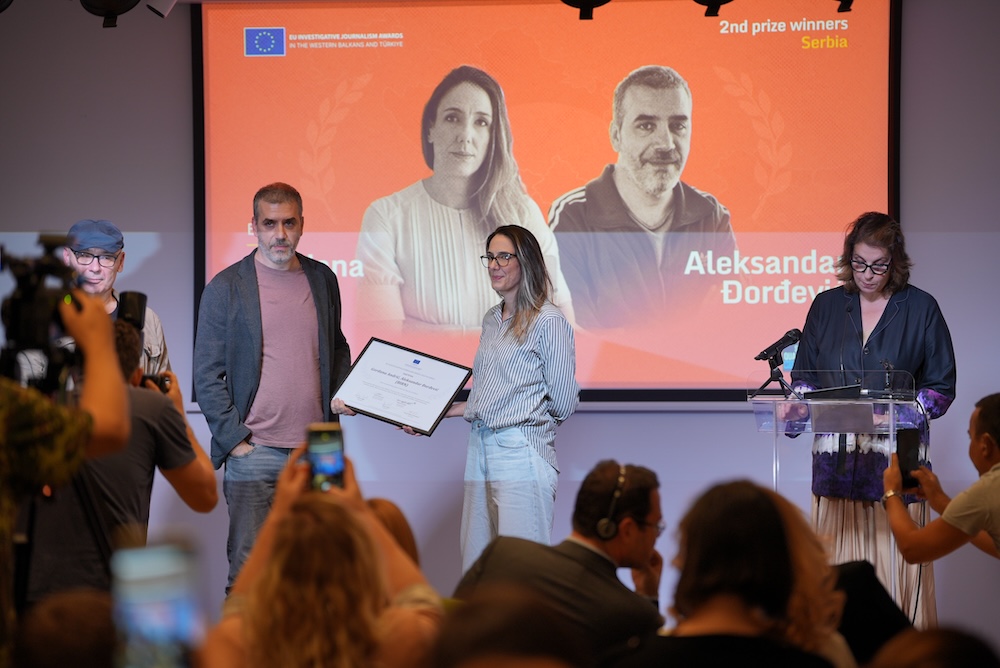 Novinari BIRN-a Gordana Andrić i Aleksandar Đorđević su za izuzetno istraživanje sistemske korupcije Lažirane isplate, fiktivna predavanja: Kako su milioni evra za ugrožene završili u tuđim džepovima osvojili 94 poena.