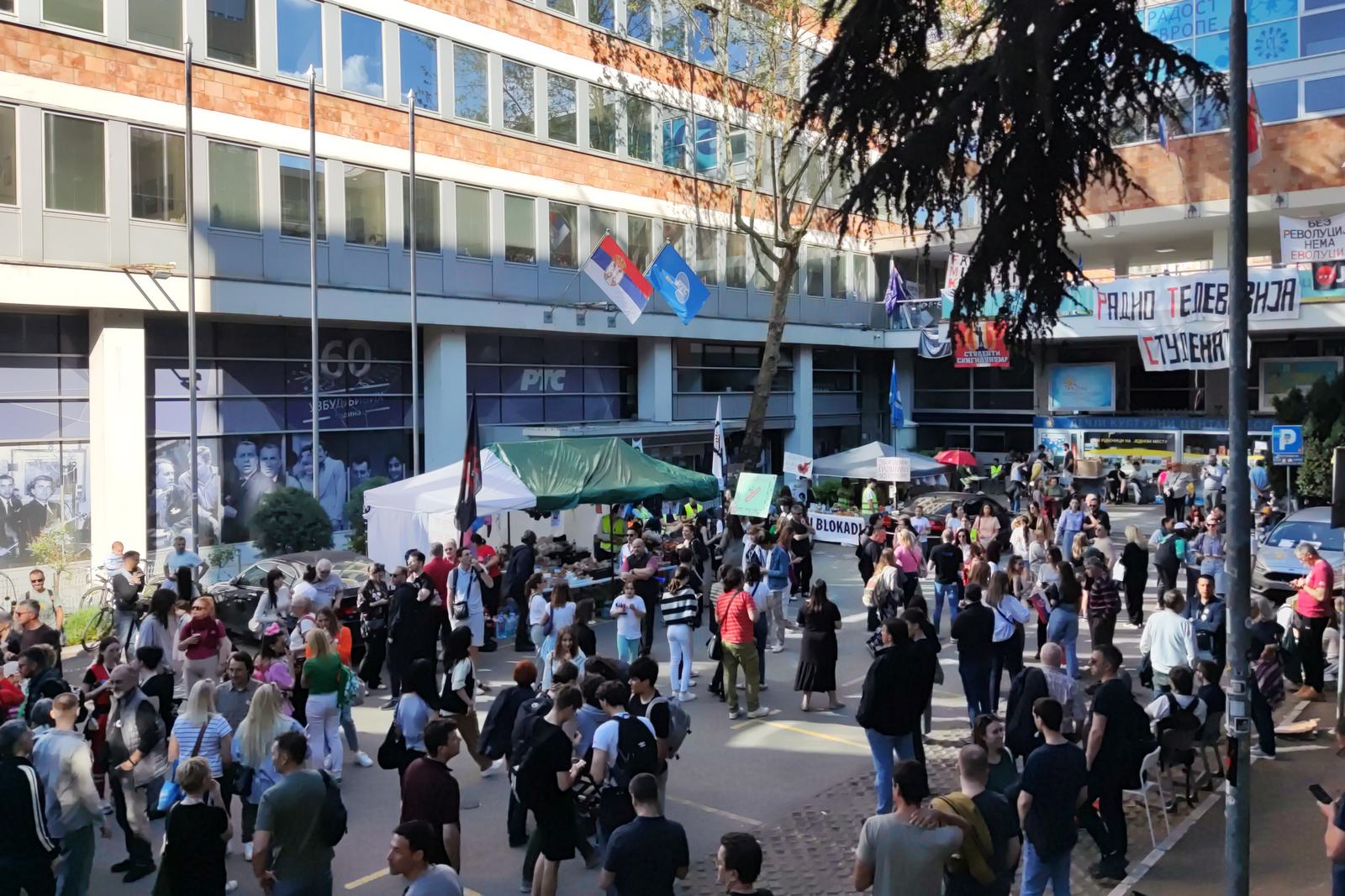 Studenti koji od 13. aprila blokiraju zgrade RTS-a u Beogradu poručuju da će blokada trajati “dok se ne raspiše novi konkurs za članove Saveta REM-a”.