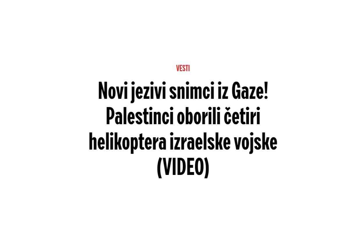 U tekstu pod naslovom „Novi jezivi snimci iz Gaze!” portal Informer je 7. oktobra objavio informaciju o tome da su „palestinski militanti oborili četiri helikoptera izraelske vojske”, kao i da su „piloti i kompletna posada stradali na licu mesta, a letelice se pretvorile u vatrenu buktinju”.
