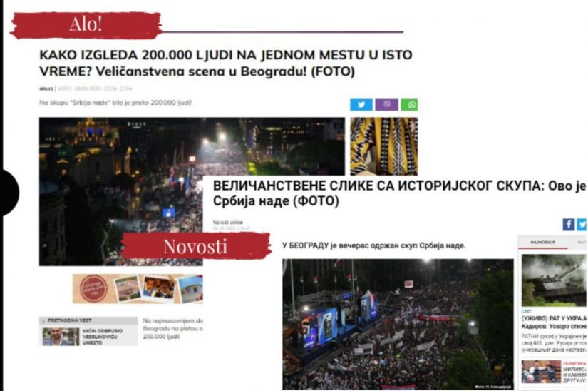 Osim što su pokazali isključivu pristrasnost, portali Alo, Novosti, Republika i Informer izveštavali su u toj meri ujednačeno kao da su deo jedne redakcije. Naime, i tokom održavanja skupa „Srbija nade”, ali i tokom subotnjeg protesta „Srbija protiv nasilja”, naslovne strane ova četiri online izdanja izgledale su uniformisano, a informacije koje su jednu za drugom objavljivali ne samo da su imale isti sadržaj, već u većini slučajeva i istu opremu, odnosno naslove. Sve vesti pratile su identične fotografije i snimci. Pritom, u vestima ni u jednom slučaju nije naglašeno da je sadržaj preuzet od nekog drugog medija, već je kao autor svuda naveden baš medij koji je vest i plasirao.