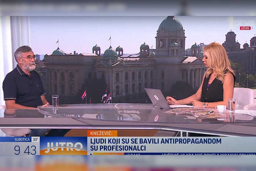 Jutarnji program TV Prve, od 1. do 14. jula, dobar je primer kako funkcioniše sprega vlast – komercijalne televizije sa nacionalnim pokrivanjem koje (umesto da informišu u javnom interesu, istinito, objektivno i potpuno, kao i da poštuju standard medijskog pluralizma tj. zastupljenost različitih mišljenja i stavova), informišu isključivo u interesu aktuelnog režima, u ovom slučaju zagovarajući otvaranje rudnika u dolini Jadra.