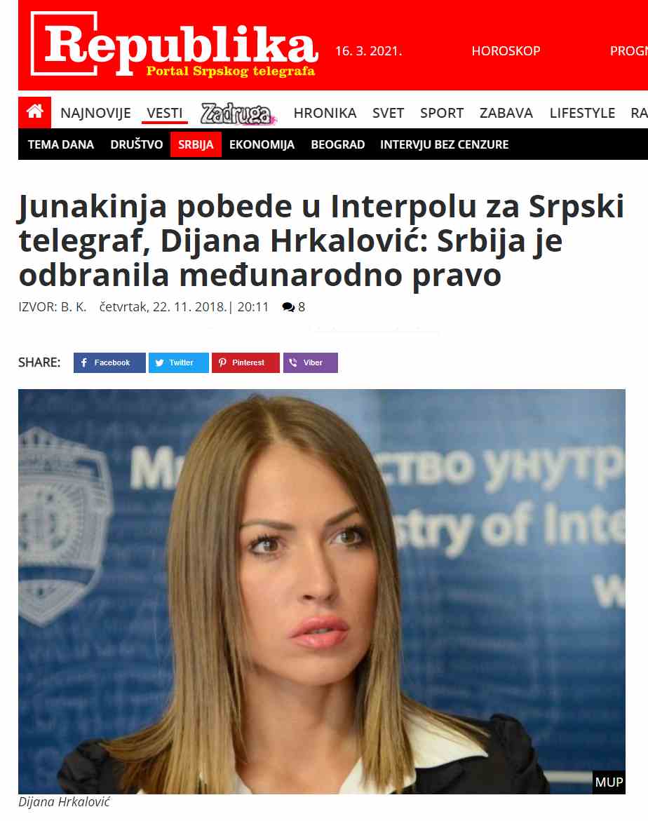 Tabloidi su Hrkalović predstavljali kao heroinu srpske policije
