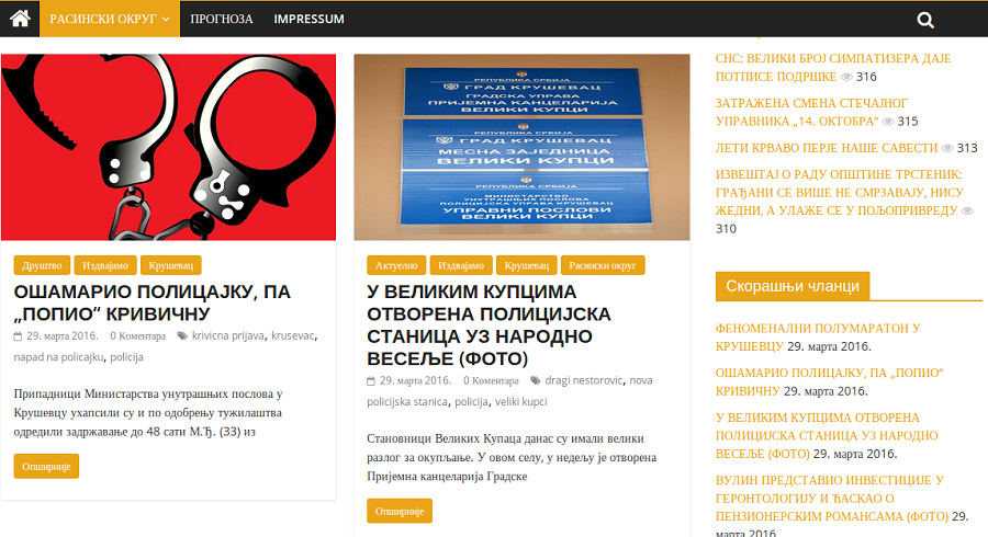 „Ima nekih sajtova sličnog imena na kojima ne postoji impresum i istaknuto ime urednika, koji su partijski bilten, a ne javno glasilo Rasinskog okruga, pa sam odlučio da svojim kolegama pomognem stvaranjem novog brenda koji ipak čuva tradiciju starog. Ništa nemam ni protiv partijskog biltena, ali novine su novine, a bilten je bilten“, napisao je on i najavio da će na portalu kritikovati i hvaliti, ali samo u javnom interesu. Sadržaj portala, međutim, nije sasvim opravdao te pretenzije, izuzev u domenu bombastičnih naslova.