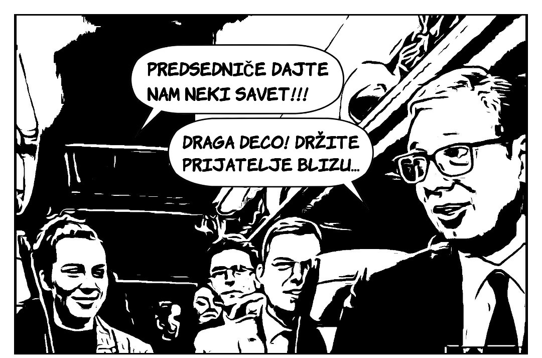 Uskoro će izbori, i režimska propagandna mašinerija deluje i gazi punom parom. Tabloidi i tabloidne televizije besramno hvale uspehe vlasti i još besramnije napadaju pojedine opozicione lidere, susede, Evropu i Zapad. Aleksandar Vučić se propagandistički predstavlja kao borac, spasilac, pobednik, žrtva, marljivac, asketa, student, štreber, poliglota, enolog, ljubitelj domaće kuhinje, poznavalac toponima, vrhunski govornik, sipač istine.