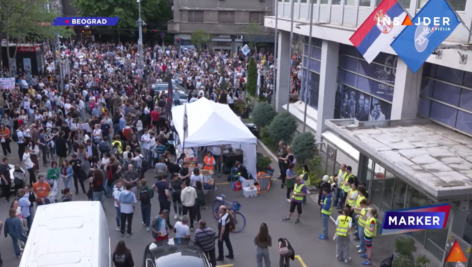 Kako javlja reporter Insajdera Stefan Miljuš, u toku je 44. sat studenske blokade radiotelevizije Srbije u Beogradu, Takovska ulica je blokirana, a u ovom trenutku pripadnici policije su se sklonili ispred glavnog ulaza u RTS.