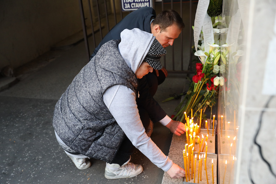 Pored mesta ubistva, ispod spomen ploče, u tišini su položeni venci i cveće.