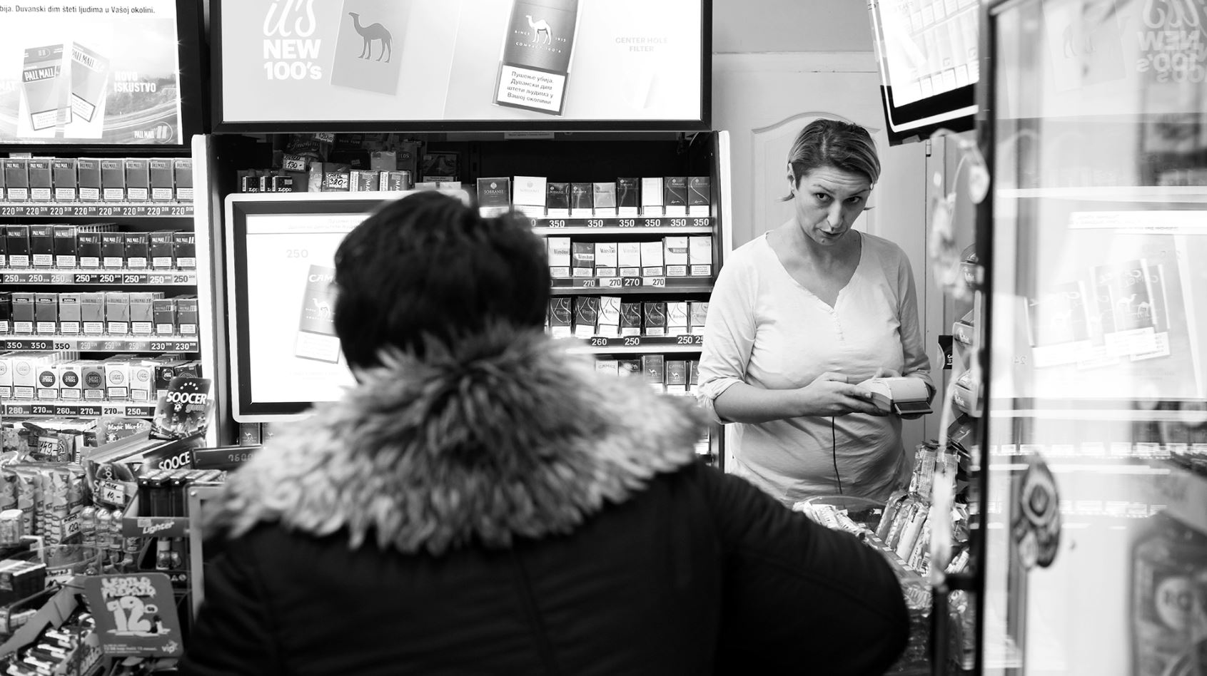 Verica Marinčić na poslu, gde je takođe uznemiravana. Ona radi u trafici jer od novinarskog posla ne može da živi (foto: Marko Risović / Slavko Ćuruvija fondacija)