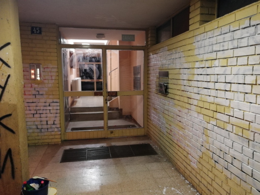Grafiti „Pizdo ustaška, ovo nije tvoj grad ni zemlja“ i „Smrade konjušarski“, koji su u noći između 23. i 24. novembra osvanuli na ulazu u zgradu u kojoj Gruhonjić živi sa svojom porodicom, prekrečeni su večeras u akciji u kojoj je učestovalo pedesetak novinara, aktivista, političara i Gruhonjićevih komšija.
