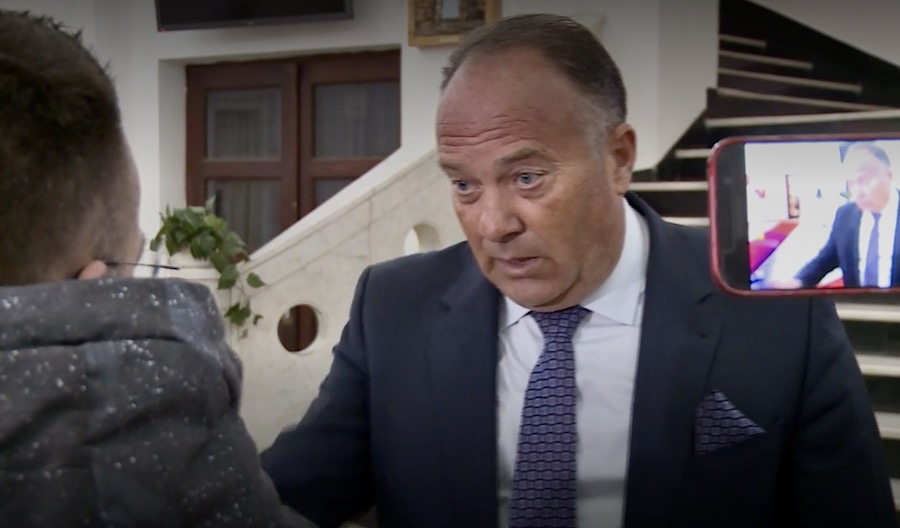 Ministar Mladen Šarčević gura mikrofon novinara N1 (foto: snimak ekrana TV N1)