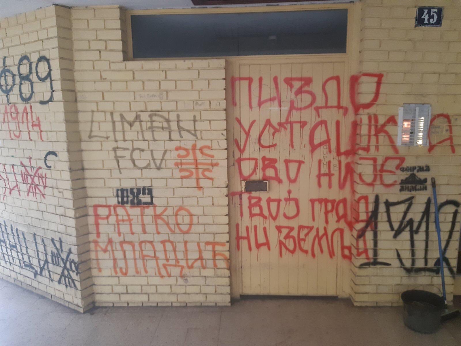 Pretnje na ulazu u zgradu u kojoj živi Dinko Gruhonjić (foto: NDNV)