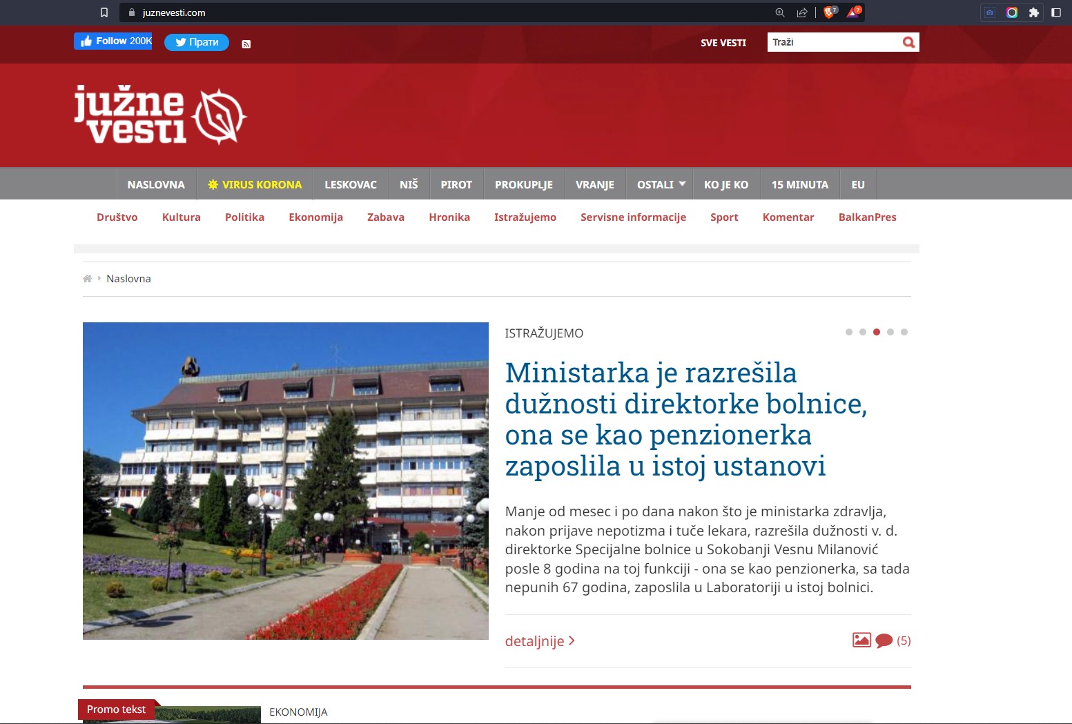 Printskrin: Sajt Južnih vesti