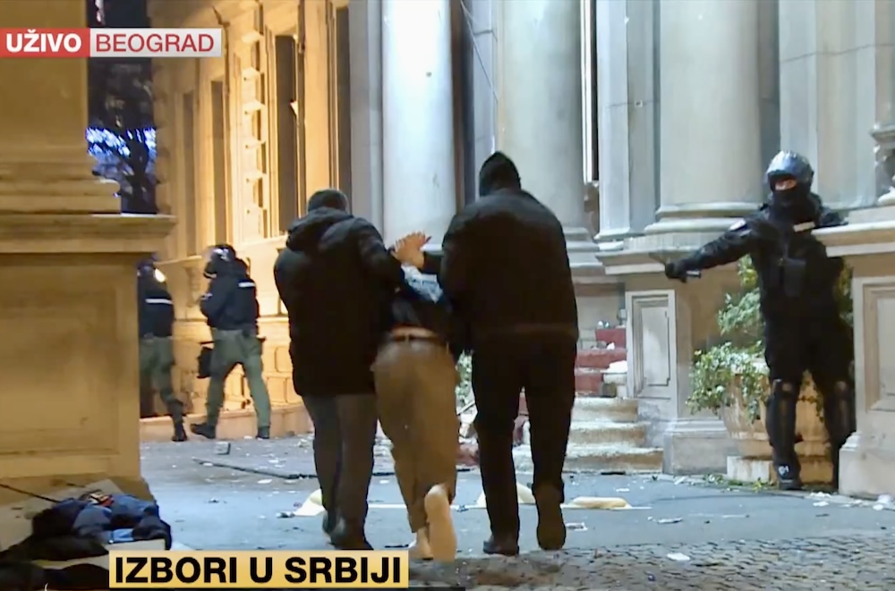 Policajci u civilu hapse tokom intervencije žandarmerije ispred Skupštine Beograda (foto: Jutjub snimak ekrana)