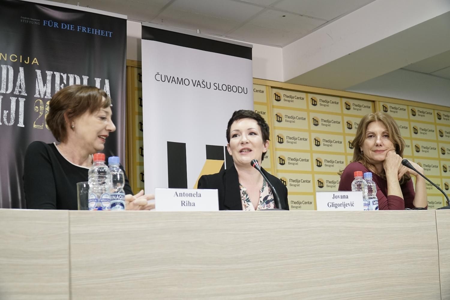 „Jako puno novinara moje generacije nema gde da radi, jer nema dovoljno medija u kojima može da se radi. Na tržištu imate veliki broj novinara koji su dobili otkaz ili su se redakcije gasile“, kazala je Antonela Riha.