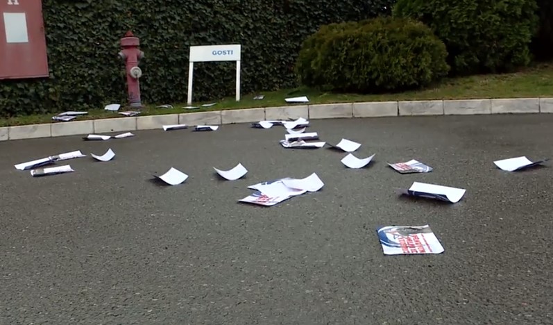 Ovog puta, na nekoliko desetina pamfleta, koji su sa ulice ubačeni preko ograde dvorišta televizije, ispisan je natpis „Sloboda za Ratka Mladića“ sa njegovom fotografijom u vojničkoj uniformi, uz potpis Konzervativni Pokret „Naši“.