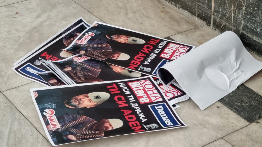 Samo dan nakon gostovanja predsednika Aleksandra Vučića na Radio-televiziji Srbije, u kojem je za dnevni list Danas rekao da radi protiv sopstvene države, ispred ulaza u zgradu u kojoj se nalazi redakcija bačeni su leci, na kojima su glavni i odgovorni urednik Dragoljub Draža Petrović (sa albanskom kapom na glavi) i vođa nekadašnje OVK (Oslobodilačna vojska Kosova) Adem Jašari. U pozadini je i lik četničkog vođe Draže Mihailovića.