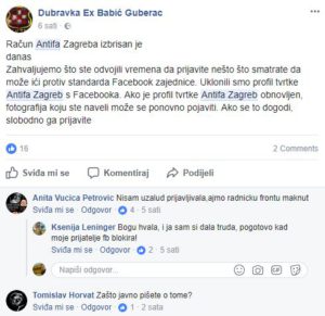 Likovanje desničara zbog prijavljivanja Antifa Zagreb Fejsbuku (foto: Fejsbuk)