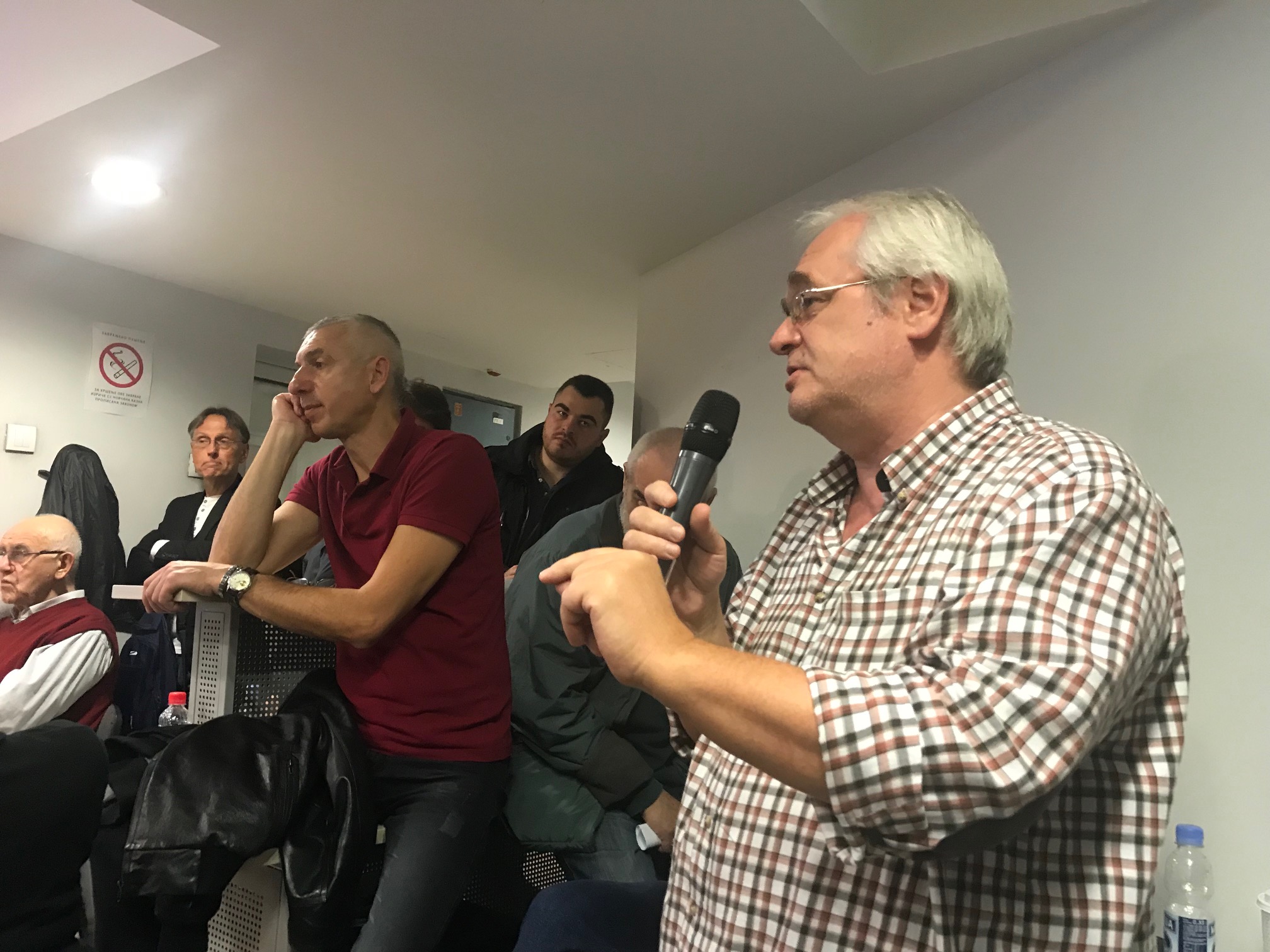 Predsedavajući Stojan Marković poziva da se ne govori uvredljivo, pogotovo o onima koji nisu prisutni i ne mogu da reaguju (Skrozza nije prisustvovala skupštini udruženja iz kog je istupila).