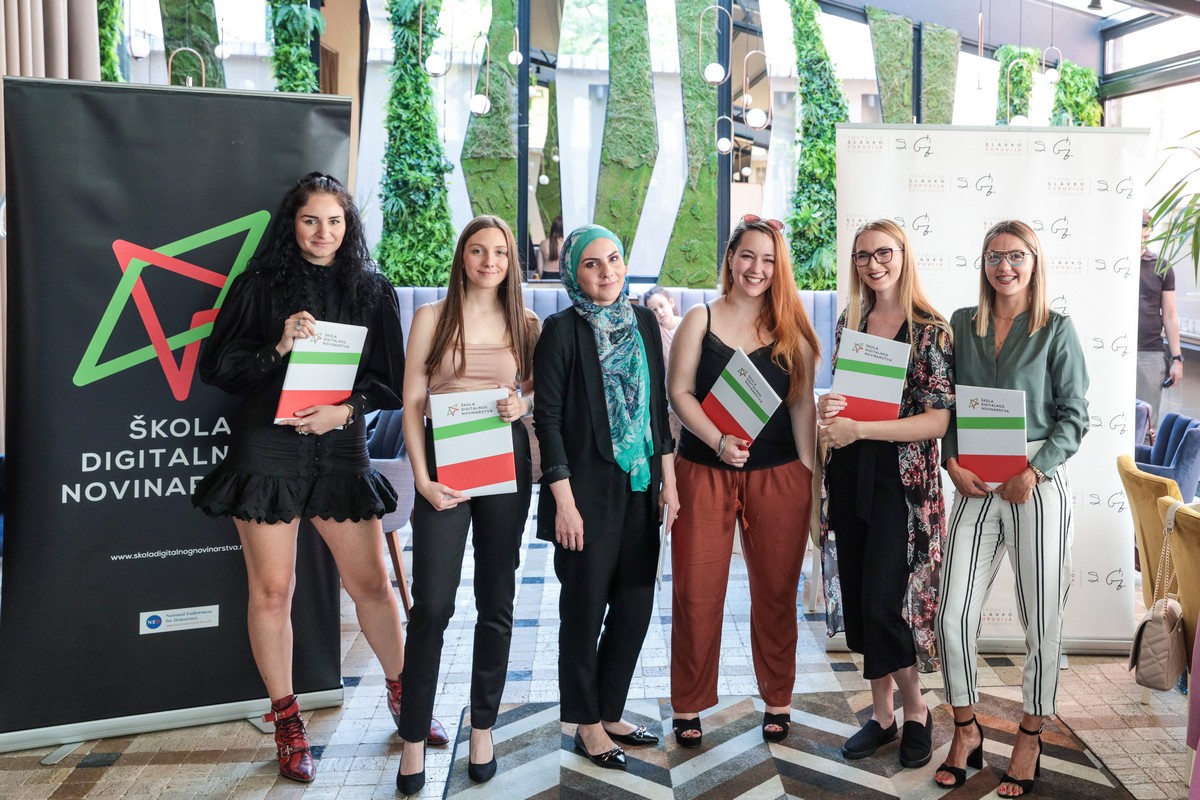 Diplome za završenu šestu Školu digitalnog novinarstva dobili su Nusreta Brunčević, Teodora Čičovački, Sara Sekulić, Mina Delić, Dunja Karanović, Tamara Urošević i Dejana Cvetković.