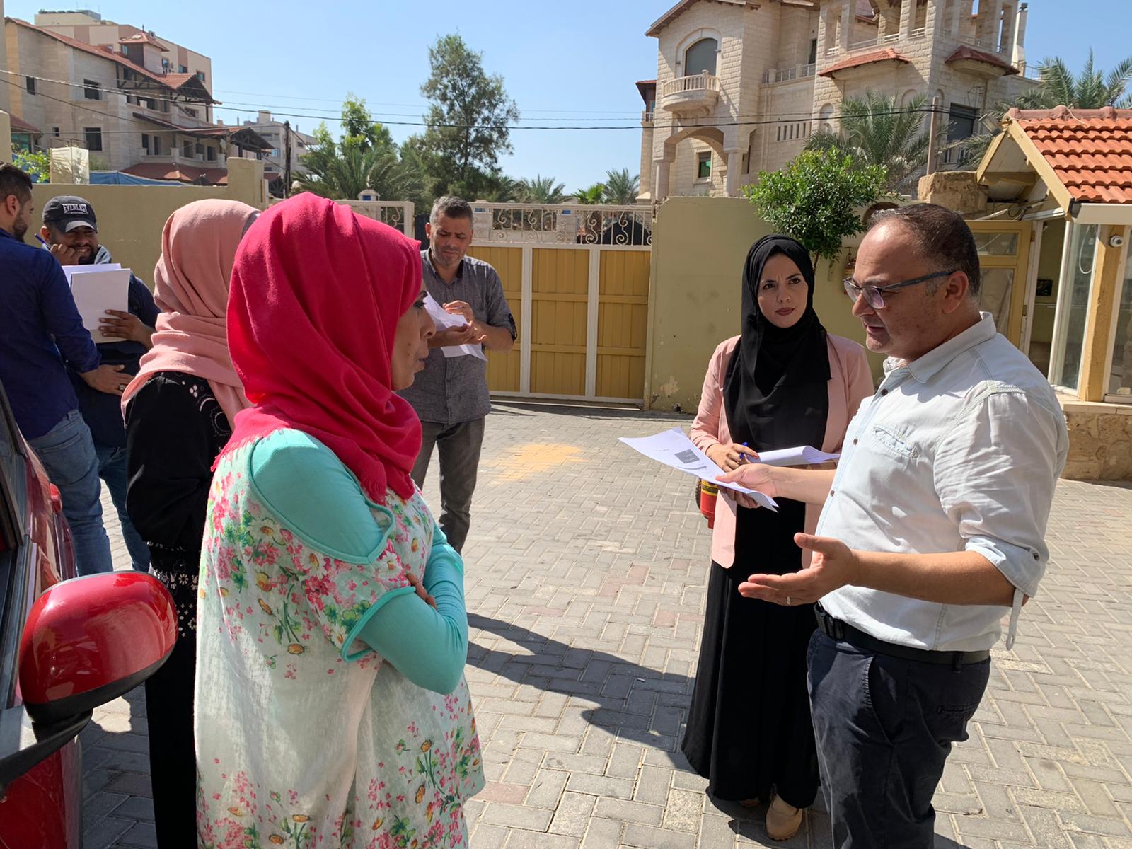 Valid Batravi (desno) daje uputstva o bezbednosi novinarkama u Gazi 2018. godine. Batravi ističe da je “teško davati savete ovih dana, jer nijedno mesto nije bezbedno u Gazi“. Fotografiju je napravio Nidal el Vahidi, koji se vodi kao nestao od prvog dana rata