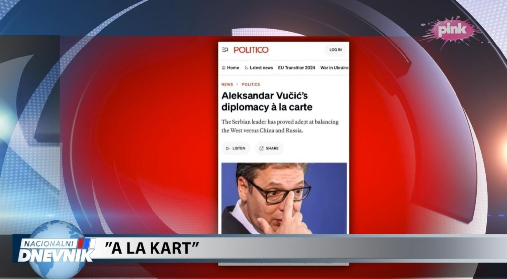 Portal Politiko započeo je članak o Aleksandru Vučiću ocenom da se predsednik Srbije pokazao „veštim u balansiranju između Zapada i Kine i Rusije”. U nastavku piše i da je Vučić „stekao reputaciju” kao neko ko „bez napora igra za svaku stranu, u bilo kojoj situaciji”. To je bilo dovoljno da na domaćim portalima i u centralnim informativnim emisijama bude istaknuta Vučićeva „a la kart” diplomatija, kako je i sam Politiko nazvao, ali i da mediji objasne kako je ovaj briselski portal „oduševljen državničkim veštinama” predsednika Srbije. Preuveličavanjem i favorizovanjem jednih i izostavljanjem drugih zaključaka, domaći mediji su, svojom pristrasnošću, ponovo dali doprinos održavanju kulta ličnosti.