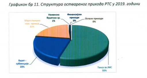 Izostavljanje finansiranja osnovnih delatnosti RTS-a iz predloga budžeta za 2021. godinu izazvalo je u javnosti podeljena mišljenja, pa čak i da je reč o grešci. U finansijskom izveštaju RTS-a za 2019. godinu stoji da su prihod od ukupno 13.570.284.000 dinara činili – naplata takse (55 odsto), subvencije iz budžeta (23 odsto) i prihodi od marketinga (21 odsto).