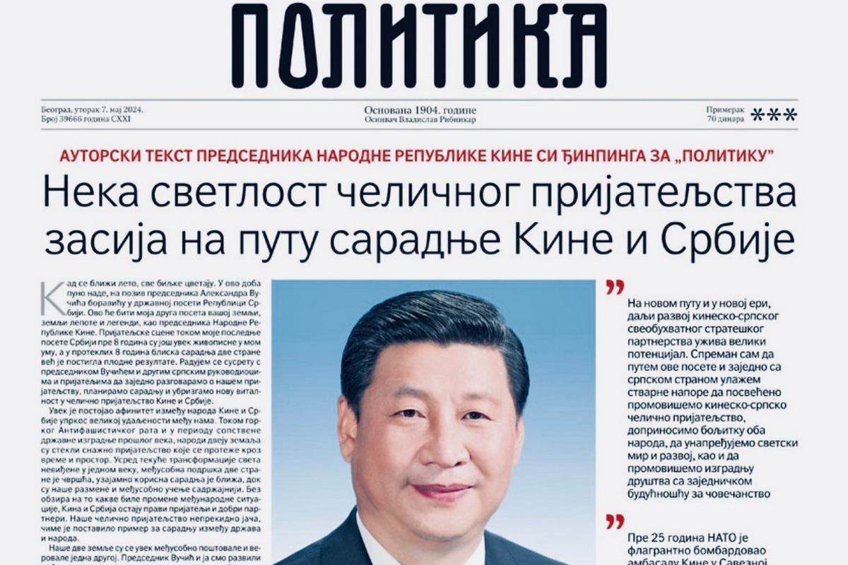 - Glavni i odgovorni urednik lista Politika Marko Albunović i zamenik šefa Odeljenja za publicitet CKKP Kine i direktor Kineske medijske grupe Šen Haisijung potpisali su Memorandum o razumevanju između Politika novine i magazini i Kineske medijske grupe.