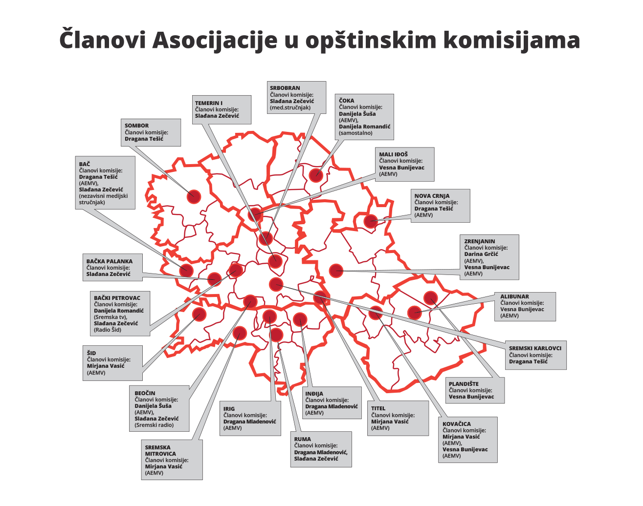 Predstavnici Asocijacije bili su članovi u komisijama u 21 od ukupno 42 lokalne samouprave koje su zaključno s krajem novembra 2017. godine raspisale konkurse za sufinansiranje medijskih sadržaja.
