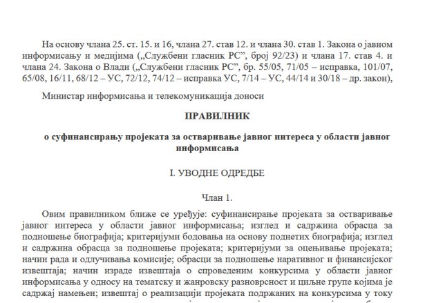 Još jedna novina u Pravilniku jeste i da pravo učešća na konkursu nemaju izdavači medija u kojima nisu objavljeni osnovni podaci o mediju, odnosno impresum.