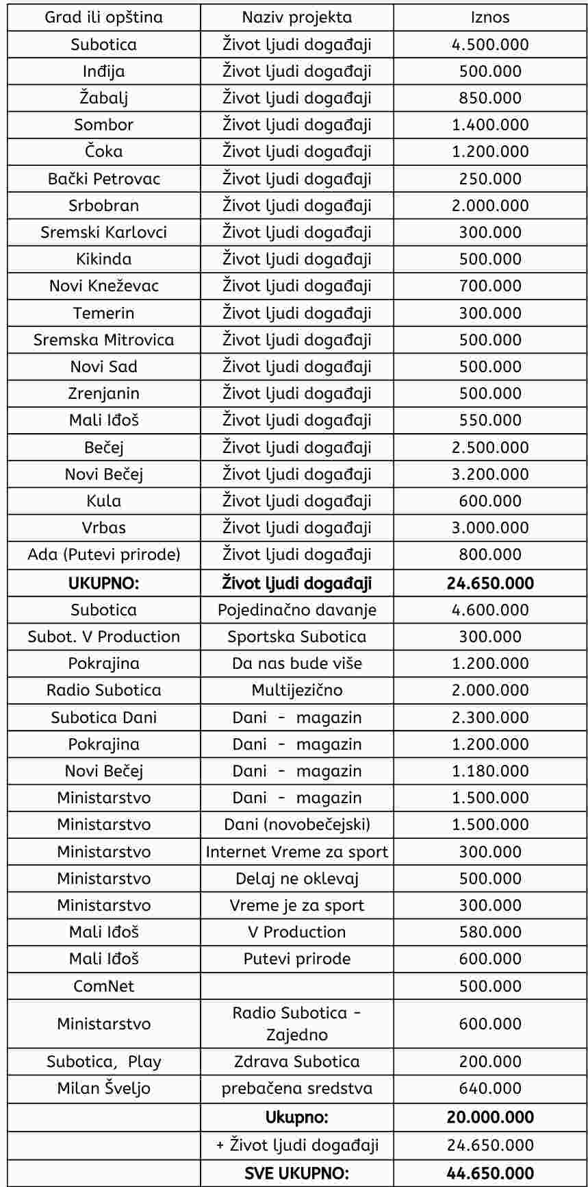 Svote projektnog novca preuzete su iz dostupnih konkursnih rešenja širom gradova i opština u Vojvodini, Pokrajinskog sekretarijata za informisanje i Ministarstva kulture i informisanja za 2021. godinu.