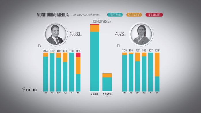 Statistika pokazuje da se o predsedniku u 88 odsto slučajeva izveštava pozitivno, u 10 posto neutralno, a tek u 1 procentu negativno, dok je ton namenjen premijerki uvek pozitivan i neutralan. Zato je, poručuju istraživači, neophodno napraviti razliku između medija i novinara, i onih koji to nisu.