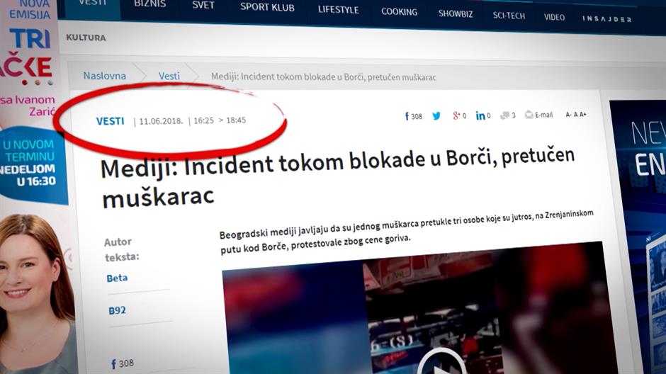 Vest o incidentu u Borči je odmah po objavljivanju na sajtu N1, podeljena i na našem zvaničnom Tviter nalogu, a u 16.36 i na zvaničnoj Fejsbuk stranici N1.