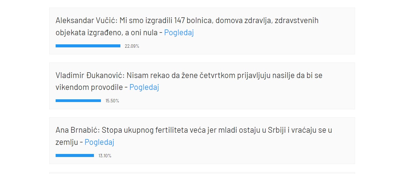Od 17 izjava kod kojih smo smo proveravali da li politički akteri govore istinu ili lažu, samo jedna je bila istinita. Devet je dobilo ocenu „kratke noge”, dok je sedam ocenjeno kao neistina.