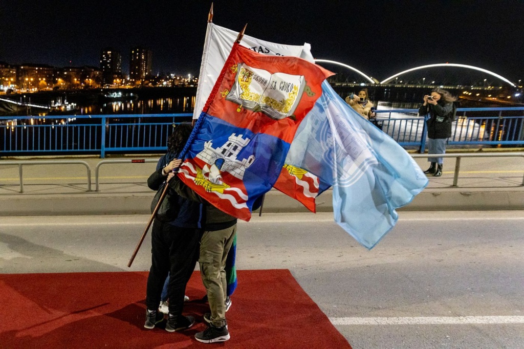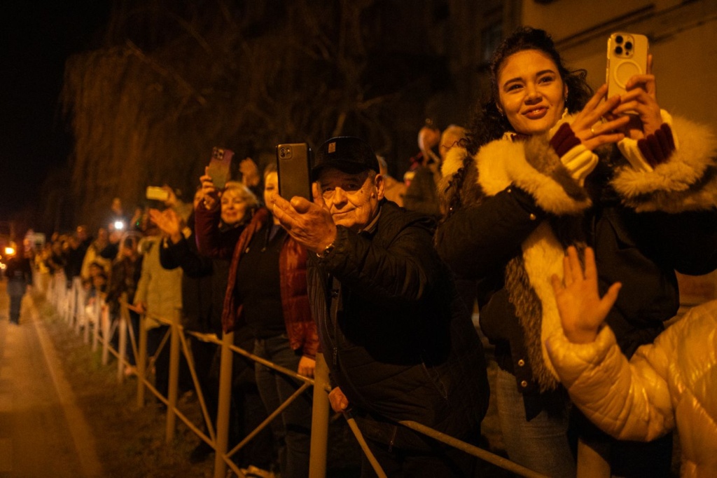 Stizali smo. I to je trajalo. Reke ljudi. Baklje. Palačinke. Neko mi je niotkud stavio medalju oko vrata. To bi trebalo da bude simbol toga da sam pobednik, ali u ovom slučaju su pobednici ljudi koji doniraju medalje, jer su se odrekli svojih dragocenih uspomena i od srca ih poklonili nama. Delili su nam cveće! Zagrljaje! Magnezijum… Svi smo plakali.