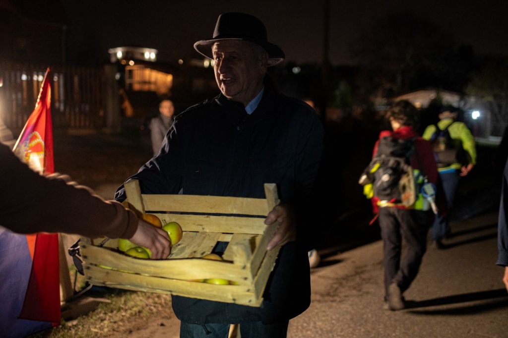 Navikle smo i na deka Mileta, koji je kao dečak. I to bogami sa teškim rancem na leđima i transparentom „Nema većih junaka od studenata i seljaka“ visoko podignutim u desnoj ruci. U levoj mu je telefon sa uključenim Viberom i snimanjem. Najopuštenije maršira sa nama u prvom redu i ćaska! Bravo deka Mile!