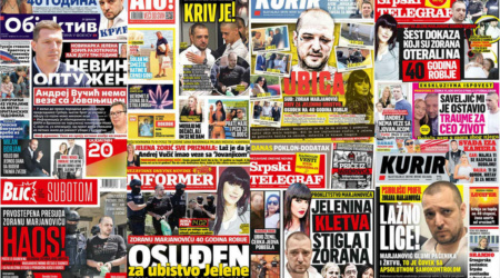 Viši sud u Beogradu je u petak doneo prvostepenu presudu kojom je Zoran Marjanović osuđen na 40 godina zatvora zbog ubistva svoje supruge Jelene Marjanović, 2. aprila 2016. godine u Borči. Presuda je bila povod tabloidima da se u ogromnom broju tekstova ponovo bave ovim zločinom, koji je 2016. postao poznat po najvećoj medijskoj eksploataciji … Настави са читањем Sedam tabloida za tri dana objavilo više od 490 tekstova o presudi Zoranu Marjanoviću i ubistvu njegove supruge Jelene
