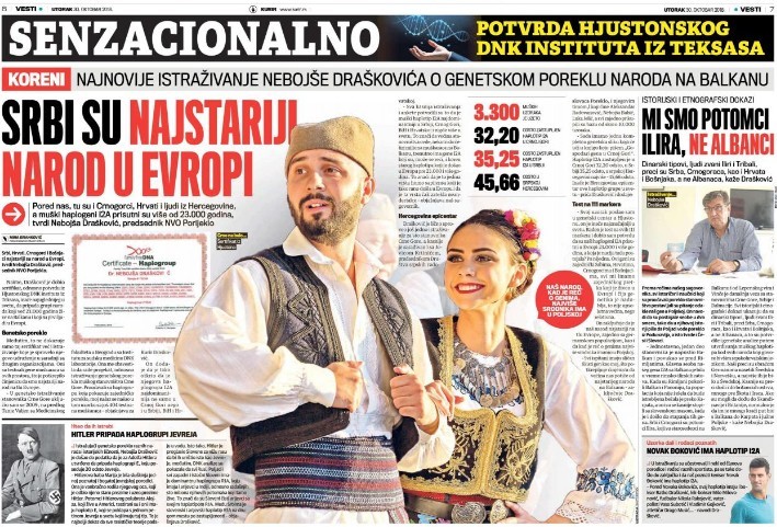 Kako piše portal B92: „Srbi, Hrvati, Crnogorci i Bošnjaci najstariji su narodi u Evropi. Za to senzacionalno otkriće postoji i sertifikat, odnosno potvrda DNK instituta iz Hjustona, najuglednije institucije u toj oblasti u svetu.”