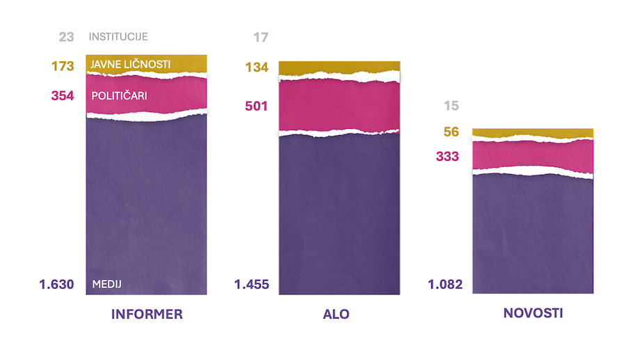 Nakon tih šest meseci arhiviranja manipulativnih vesti o blokadama i protestima, od 23. januara do 22. jula na portalima Informer, Alo i Novosti zabeležene su ukupno 5.773 manipulativne vesti o demonstracijama širom Srbije – u proseku 32 dnevno.