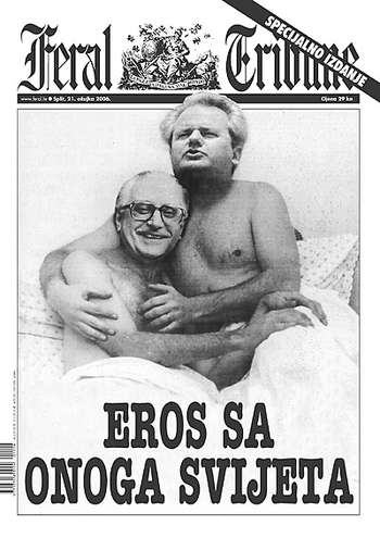 Moj je dojam da je zanimanje za tu knjigu, kao i za Feral uostalom, bilo kultno, zatvoreno. Šira javnost registrira to u medijima… Evo, sad ću da to ilustriram. Večernji list, najveći dnevnik u Hrvatskoj, objavljuje dvije stranice o knjizi. Ali im je izdavač Dragan Ogulić poslao naslovnice Ferala, na njihov zahtjev, da ilustriraju taj tekst. On je poslao pedesetak naslovnica, ili koliko već, među kojima je, naravno, bilo onih sa Franjom Tuđmanom, jer je valjda on i najviše objavljivan na naslovnim stranama. Nije objavljena nijedna. Objavljeno je njih desetak, ali nijedna sa Franjom Tuđmanom…