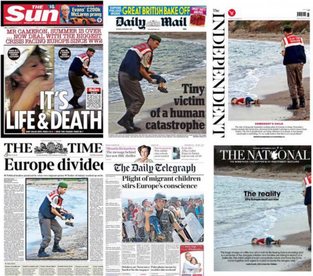 Fotografija mrtvog sirijskog trogodišnjaka (stradalog nadomak Bodruma u pokušaju da se na pretovarenom brodu, zajedno s porodicom, dokopa grčke obale), koja je 2. septembra preplavila internet, našla se već sutradan na stranicama vodećih svetskih dnevnih listova, ali i na naslovnoj strani „Politike“ – u najvećem mogućem formatu, sa svim jezivim i potresnim detaljima.