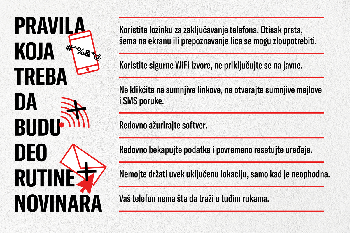Novinari često zanemaruju ovakva upozorenja, ali posle upozoravajućih iskustava koja smo izneli u prethodnom tekstu, savršeno je jasno da bezbednosna kultura svakog ko se ovim poslom ozbiljno bavi treba da bude unapređena i zato što su mogućnosti praćenja komunikacija izuzetno napredovale.