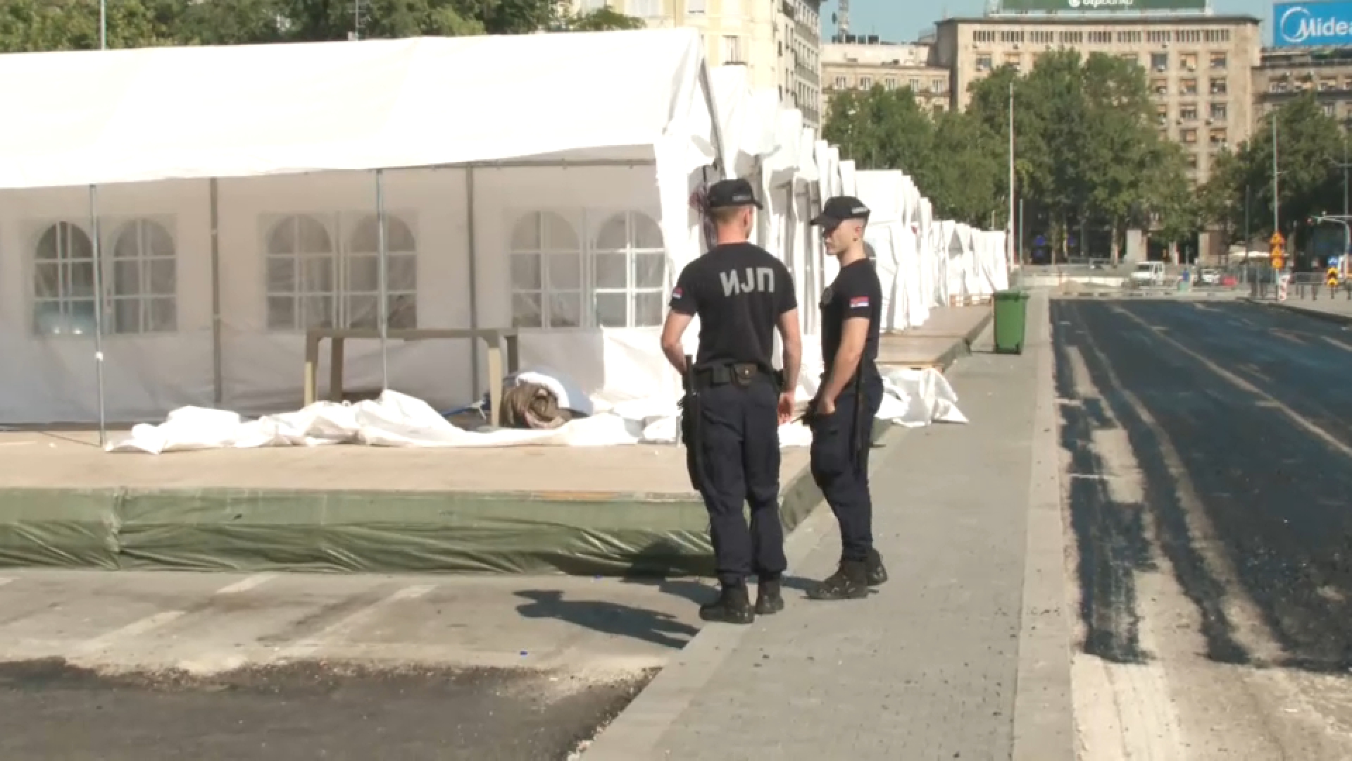 Ispred Narodne skupštine Srbije od 30. aprila 2025. godine nalaze se beli šatori, postavljeni bez zvanične dozvole, dok je Pionirski park okupiran od 6. marta 2025. godine, kada su studenti 2.0 postavili šatore i blokirali pristup parku. Uprkos zahtevima građana za uklanjanje, oba prostora su i dalje zauzeta i zatvorena za javnost.
