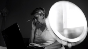 Verica Marinčić na poslu, gde je takođe uznemiravana. Ona radi u trafici jer od novinarskog posla ne može da živi (foto: Marko Risović / Slavko Ćuruvija fondacija)