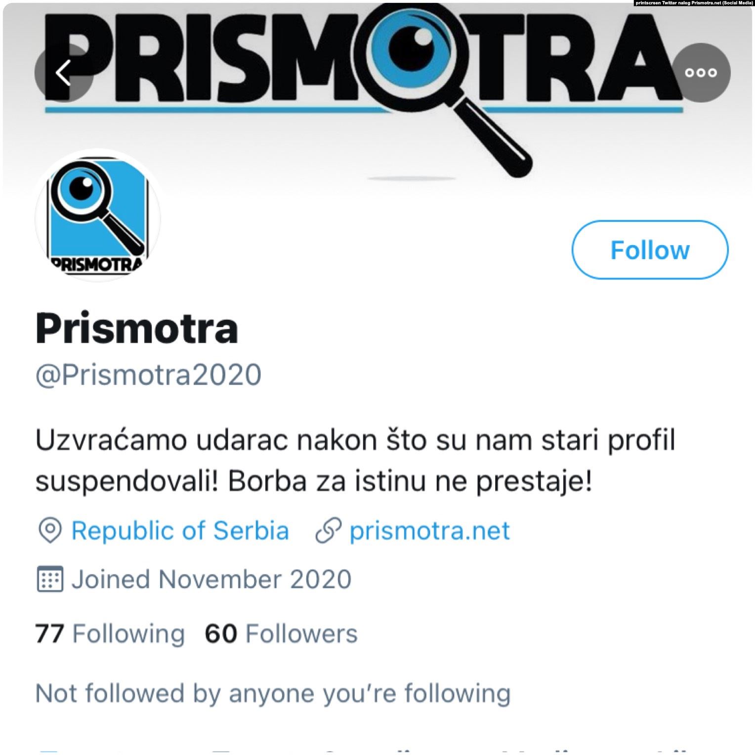 Povodom postojanja i rada portala Prismotra.net i Istraga.rs i njihovih društvenih mreža Glas Amerike obratio se Ministarstvu kulture i informisanja Srbije. U odgovoru resorno ministarstvo procenilo je da nekoliko pitanja Glasa Amerike, kako navode, predstavlja zahtev za davanjem mišljenja o primeni odredaba zakona.
