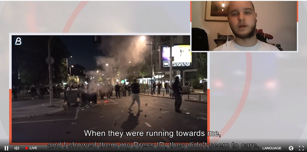 Student novinarstva iz Holandije Marejn Jop je za potrebe ove konferencije intervjuisao Žikicu Stevanovića iz agencije Beta, koga je policija pretukla na letošnjim protestima.