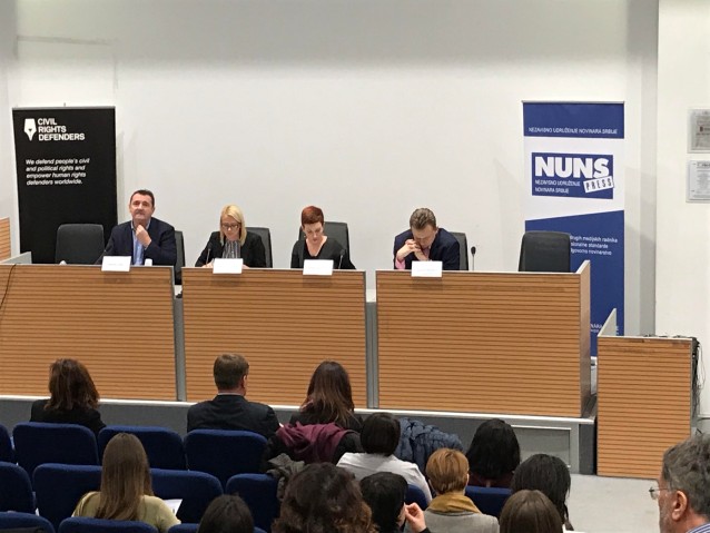 Goran Miletić, direktor organizacije Civil Rights Defenders, članovi Evropskog parlamenta Tanja Fajon i Franc Bogovič i Gordana Janković, šefica medijskog odeljenja Misije OEBS govorili su o utiscima povodom neposrednog svedočenja novinara, kao i o evropskim standardima kada je u pitanju vladavina prava, borba protiv korupcije i sloboda medija. Poruka evropskih parlamentaraca je da Srbija bez poštovanja osnovnih evropskih principa u pomenutim oblastima neće ući u Evropsku uniju. Fajon je rekla i da u Evropskom parlamentu postoji grupa za slobodu medija koja prati dešavanja u ovoj oblasti, te da će grupi preneti poruke iz Srbije.