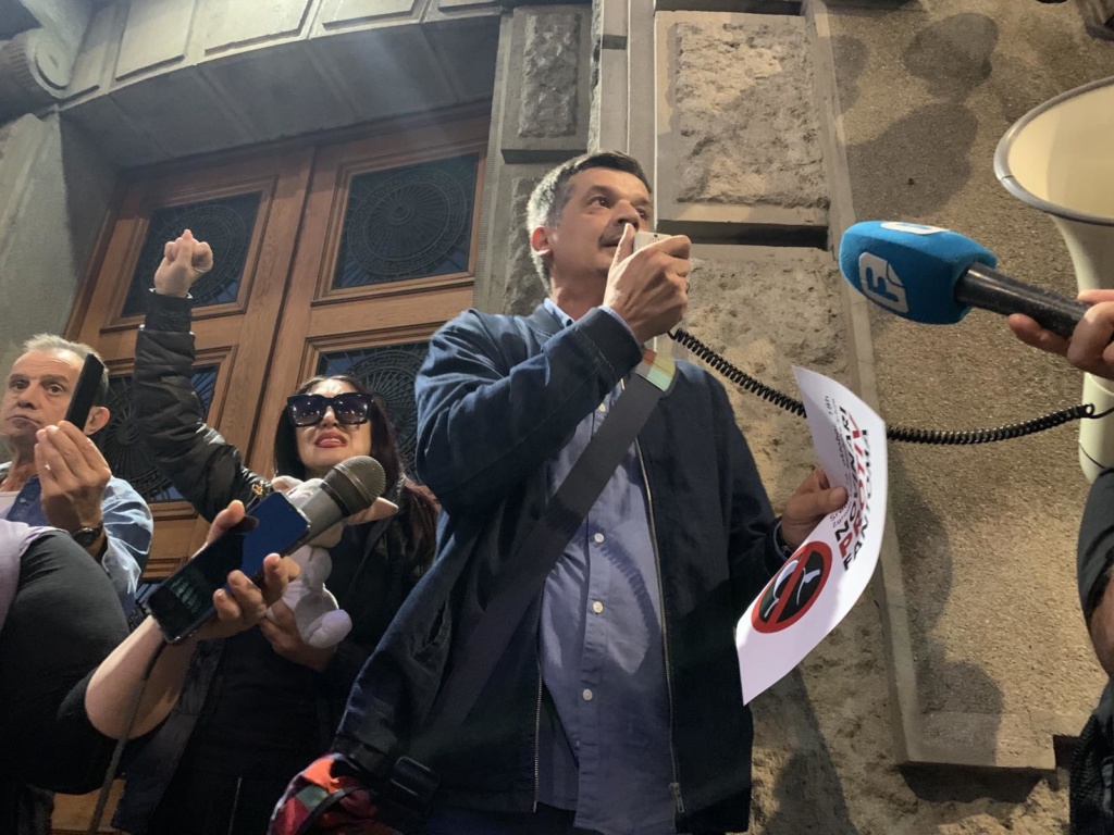 Spasić nije ništa govorio, ali su mu okupljeni građani i novinari dobacivali.