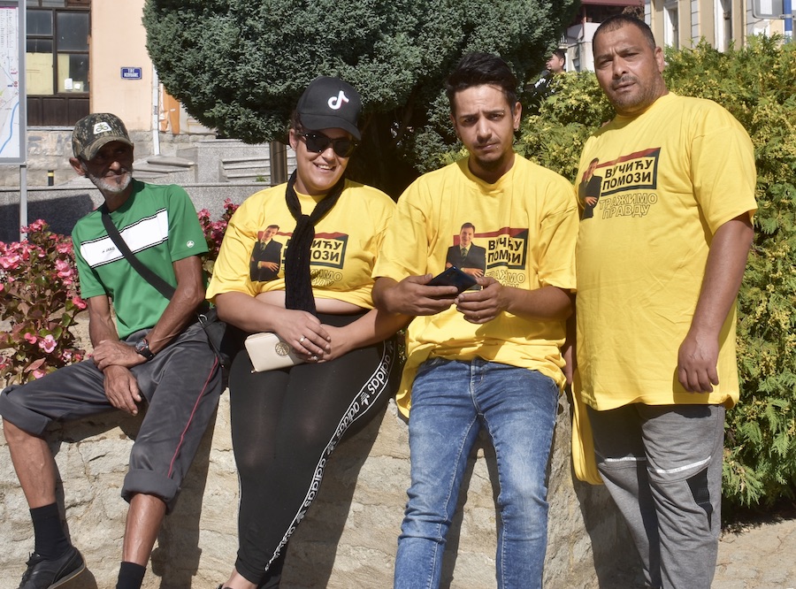 Na skupu je bilo oko 300 ljudi, a neki od njih su nosili majice sa likom predsednika Aleksandra Vučića na kojima piše „Vučiću, pomozi. Tražimo pravdu” i „Pravda za Kantara”.