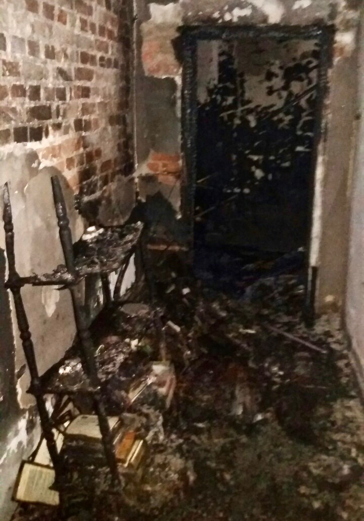 Unutrašnjost kuće Milana Jovanovića posle bačenog „Molotovljevog koktela“