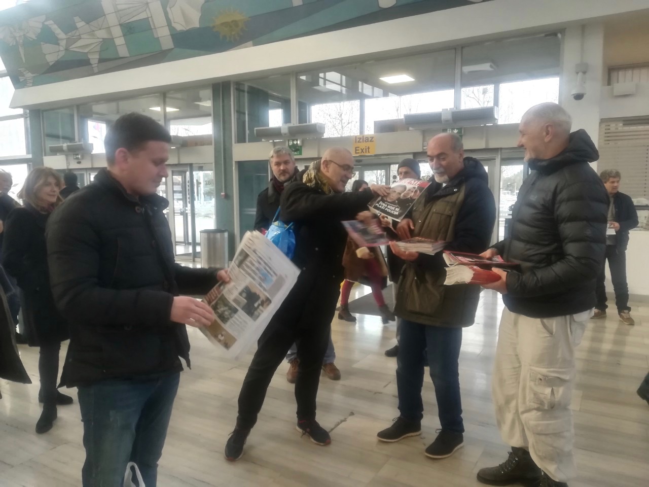 Vesna Mališić deli NIN putnicima na aerodromu (fotografije: Cenzolovka / Jasmina Dobrilović)