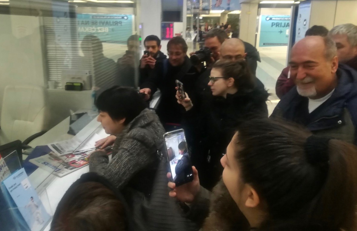 Novinari i aktivisti na aerodromu „Nikola Tesla“ (foto: Cenzolovka / Jasmina Dobrilović)